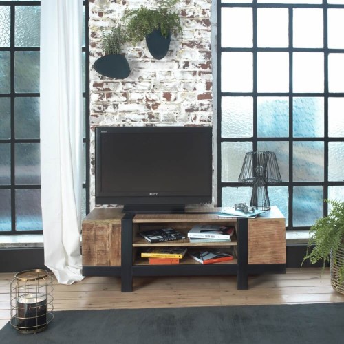 Изготавливаться ТВ тумба из массива может из разнообразной древесины. Наиболее часто для этого используются такие породы дерева как ясень, бук, дуб. Для защиты от негативного воздействия влаги и солнечного света, повышения эстетической привлекательности массив окрашивается или обрабатывается морилкой, покрывается защитным покрытием. Использование морилки выгодно подчеркивает натуральную текстуру дерева, окрашивание позволяет без лишних хлопот обеспечить гармонию с выбранным дизайном интерьера (разнообразие цветов и оттенков).